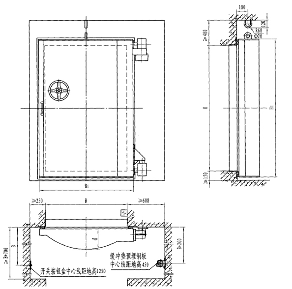 | 型號 | 門孔寬B | 門孔高H | 門扇厚δ | B1 | H1 | 啟閉時間(s) |