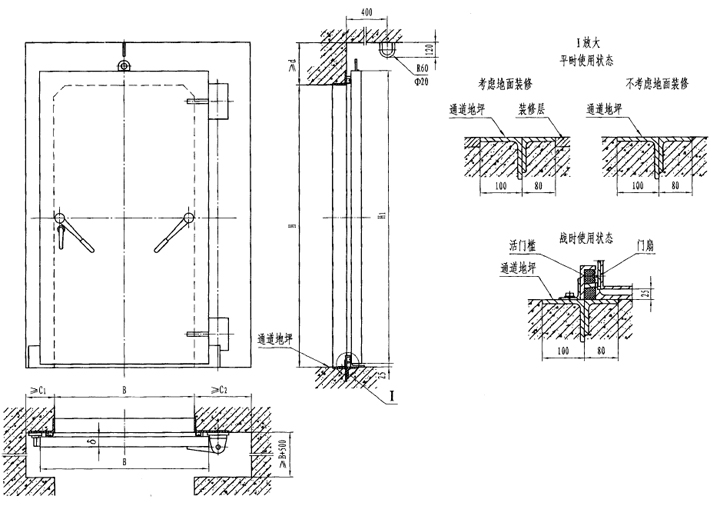 此類門的特點是平時不設門檻,地面平整,便于人員或車輛通行;戰時快速設置門檻,以滿足防護、密閉要求。